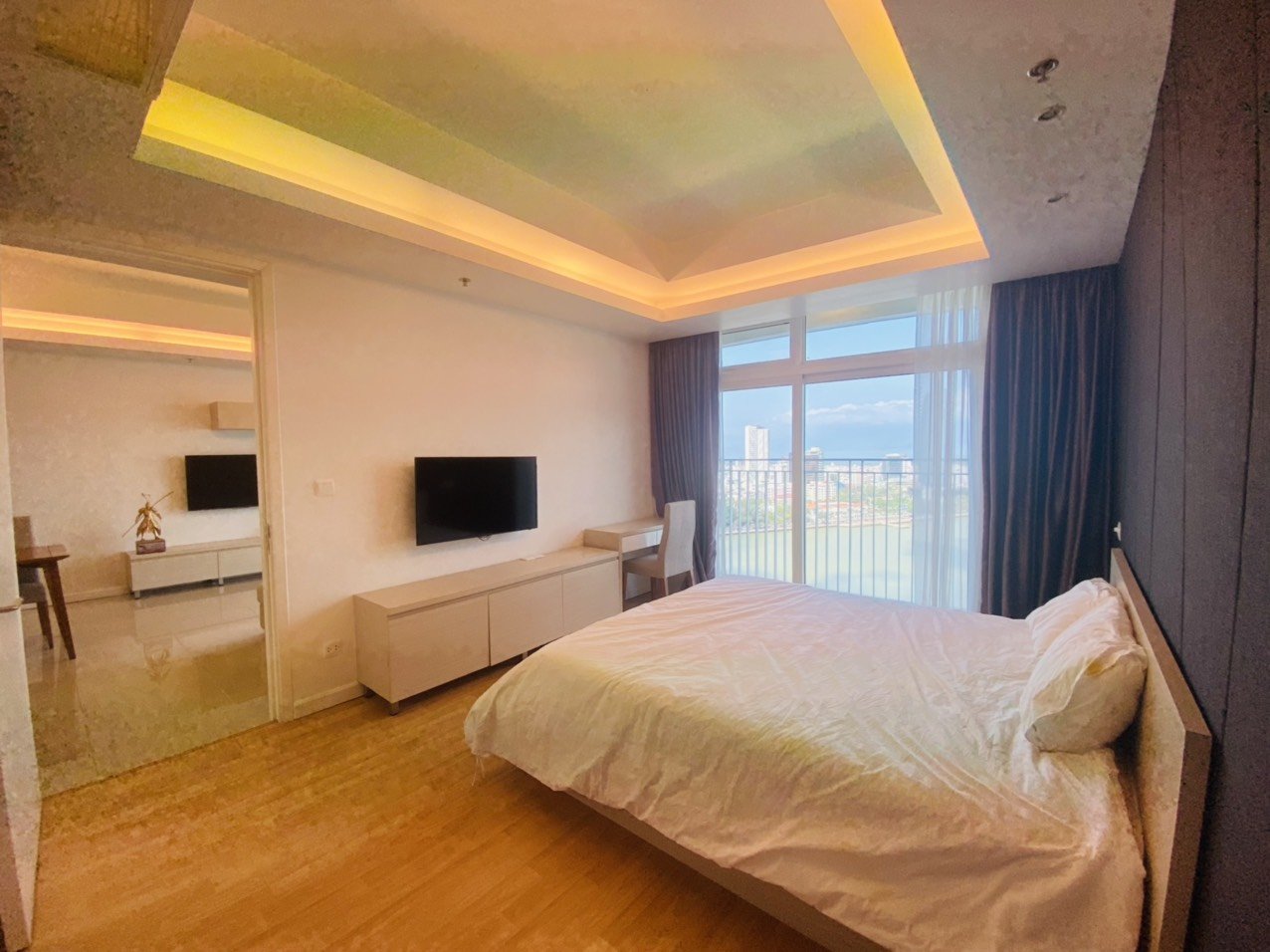 MVP Vietnam is pleased to introduce this sophisticated 2 bedrooms apartment at Azura Danang, situated in a highly sought-after location adjacent to the iconic Dragon Bridge. This luxurious high-rise offers a splendid blend of modern design, comfort, and convenience, making for an exceptional living experience in the heart of Da Nang. With a spacious 95 sqm living area on the 18th floor, this 2 bedrooms apartment commands breathtaking views of the Han River, providing a serene backdrop for your daily life.