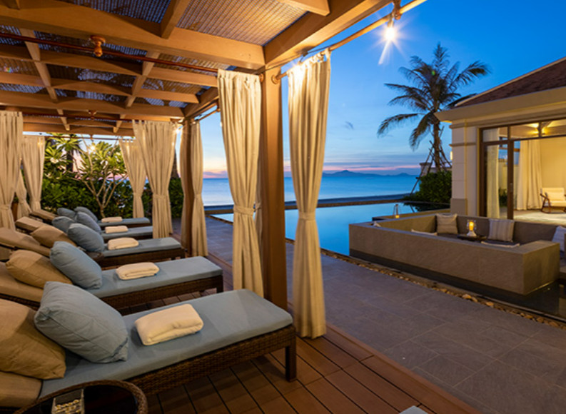 Right by the ocean, this stunning beachfront villa is where you and your family can wipe away the busy common life, dive into the romantic scenery, recharge your energy, reveal the white sand beaches that is only one step away from your home.